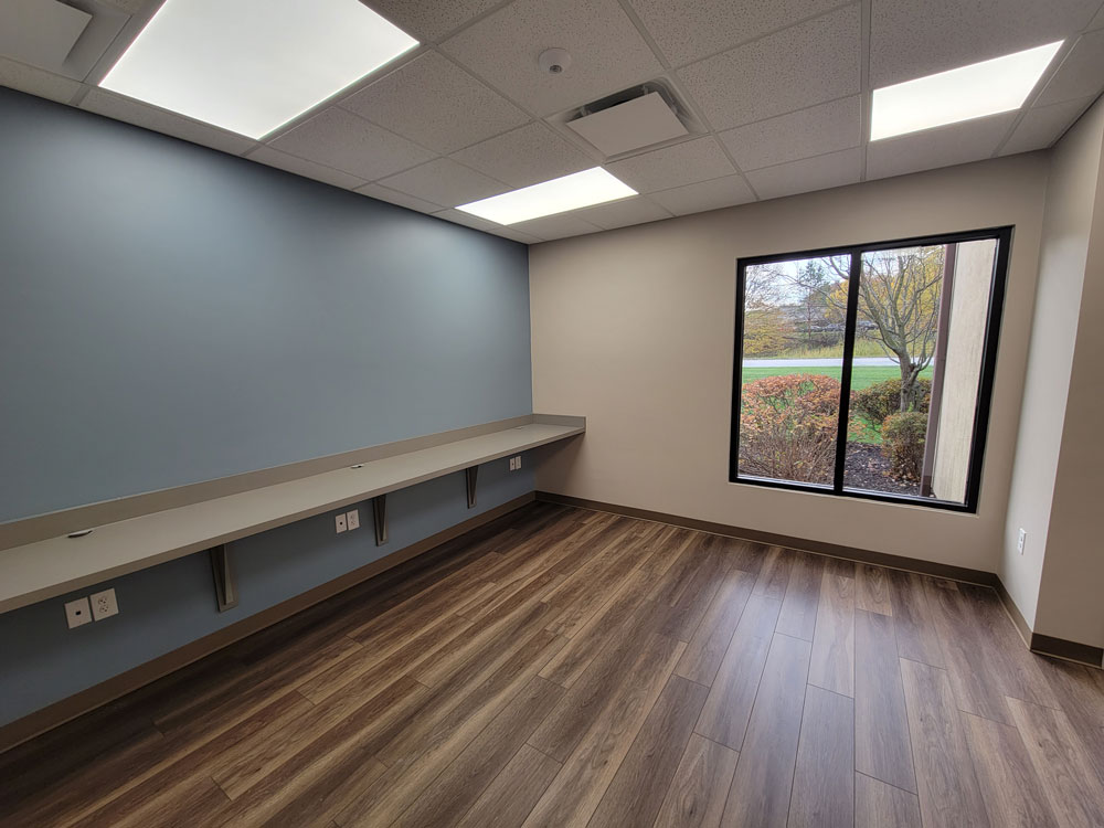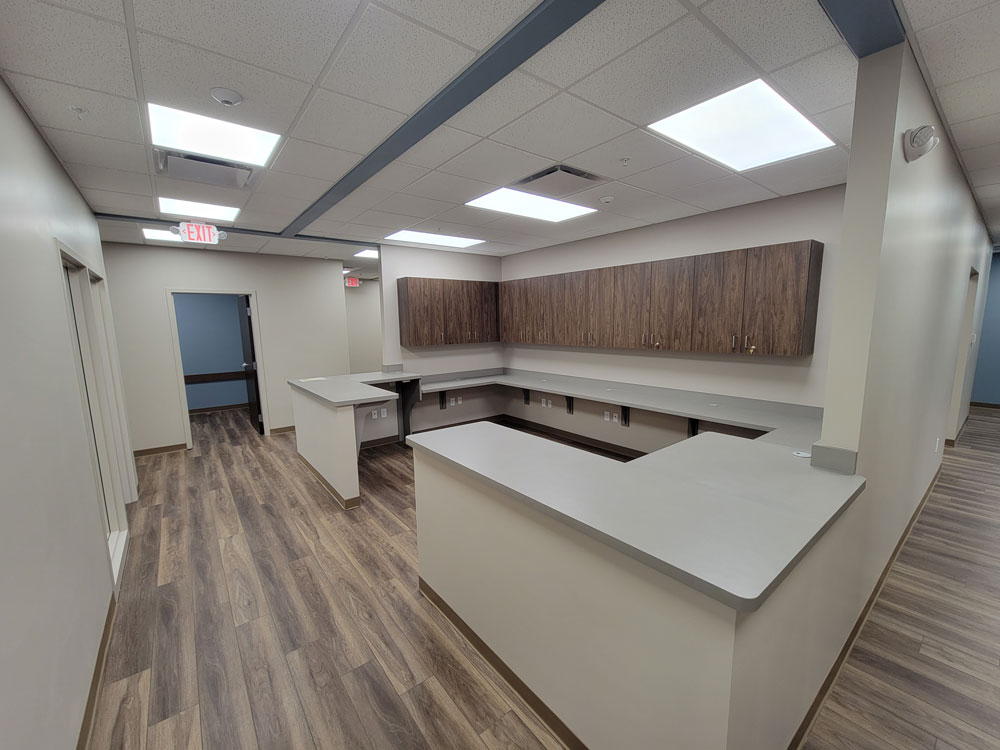 New construction, Reception and Waiting, Offices, Toilet Rooms, Lab, Nurse Station, Exam Rooms, Break Room, Group Rooms.