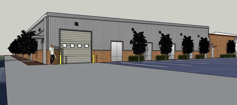 New 13,000 SF warehouse attached to the existing 9,000 SF office/warehouse building.