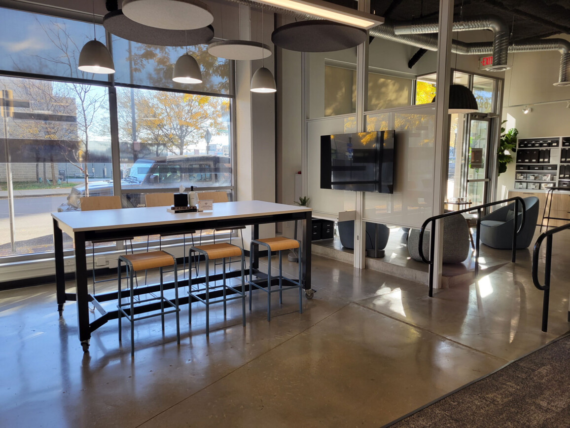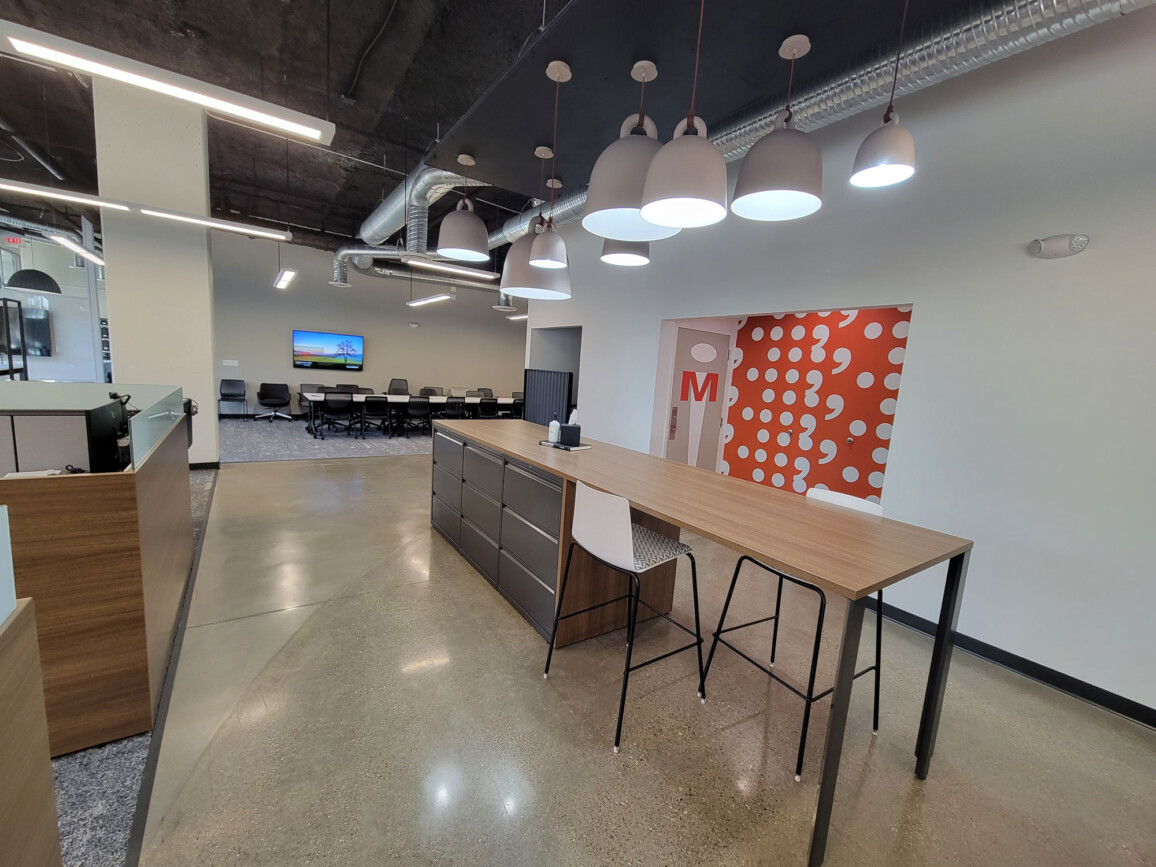 The new showroom/office space provides new meeting spaces, new conference room and training room along with an updated break area for clients and staff.